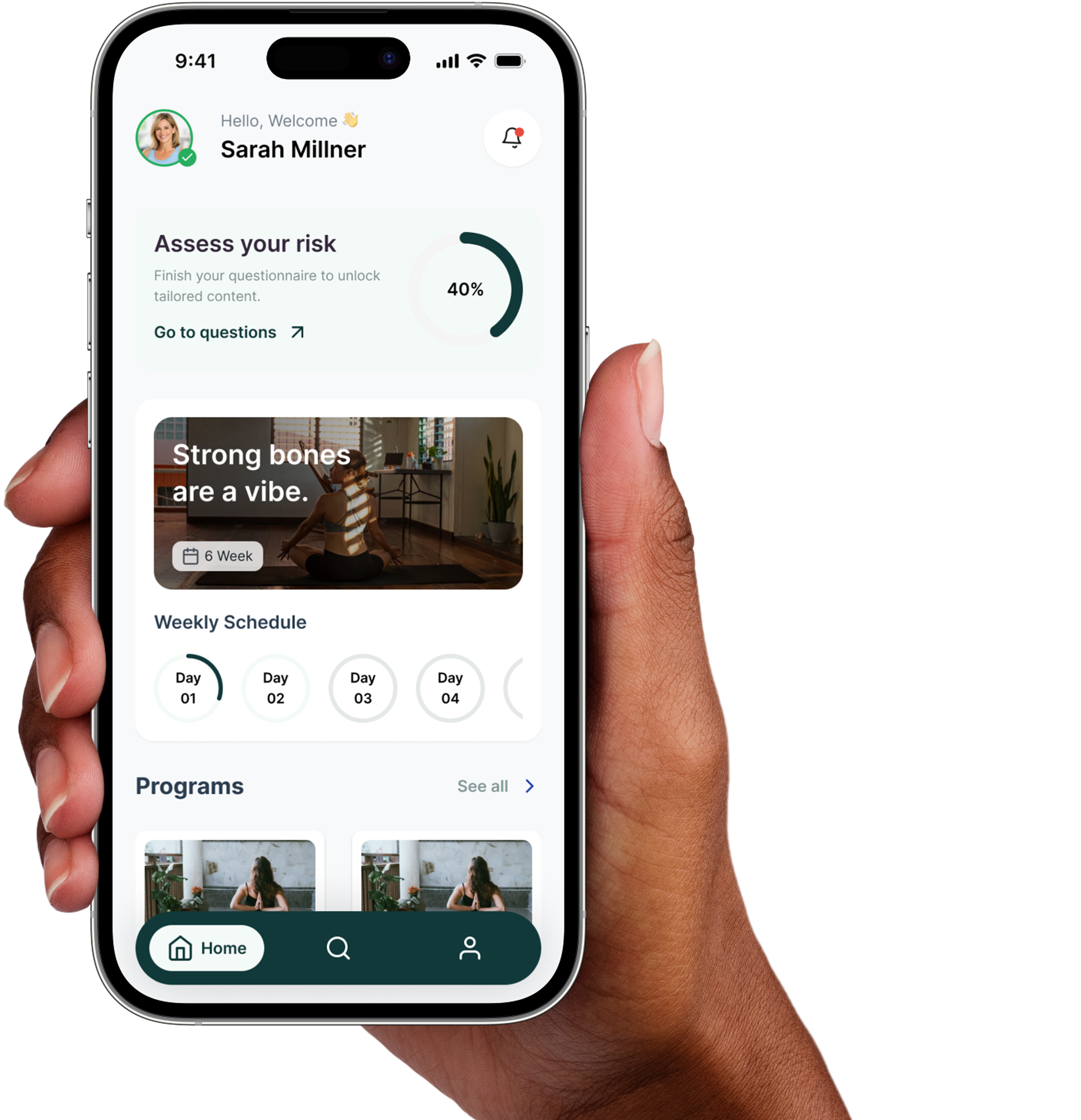 Bone-health lessons and movement guidance in one simple app.